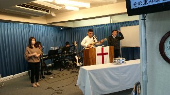 土曜礼拝が始まっています。賛美リーダーは益川さん。