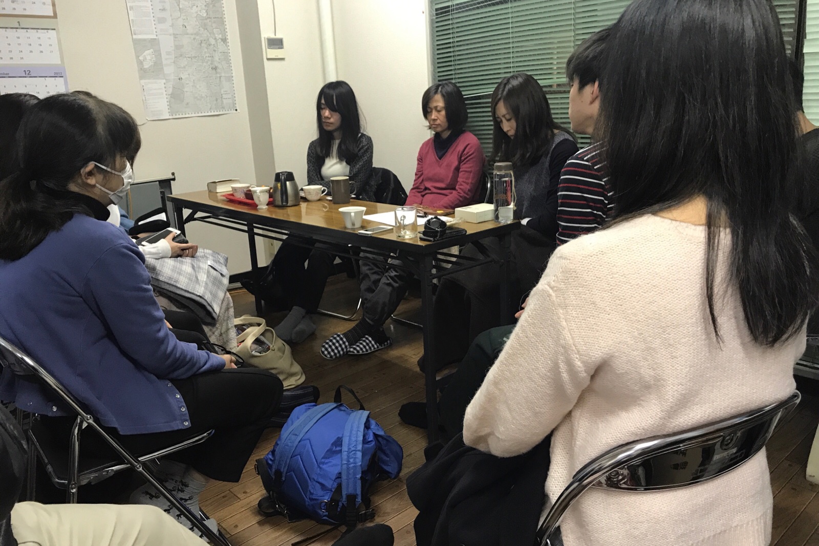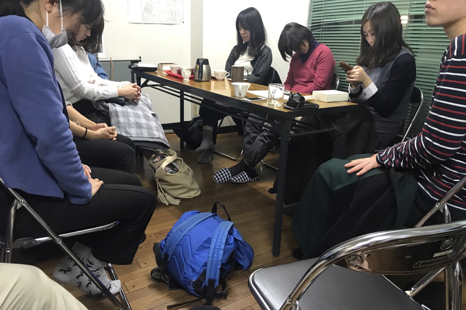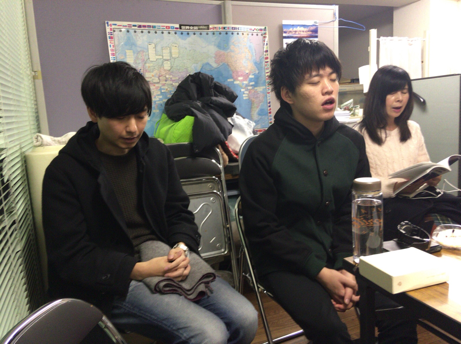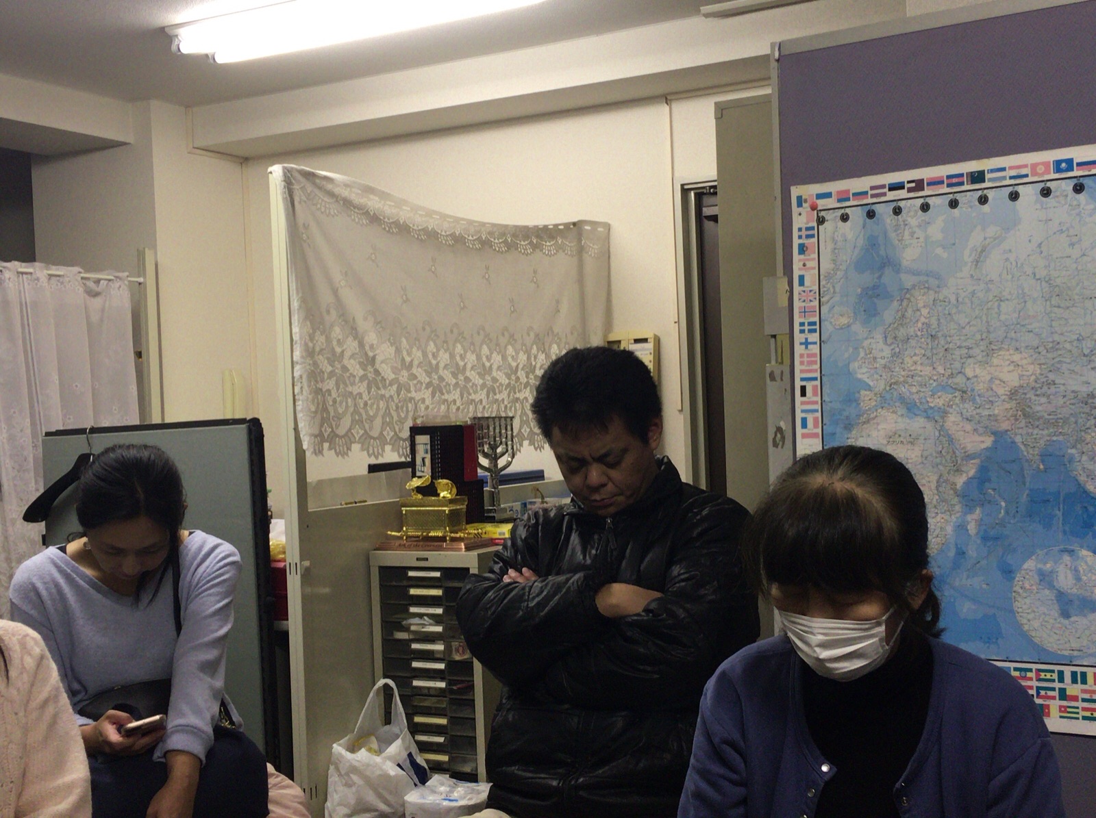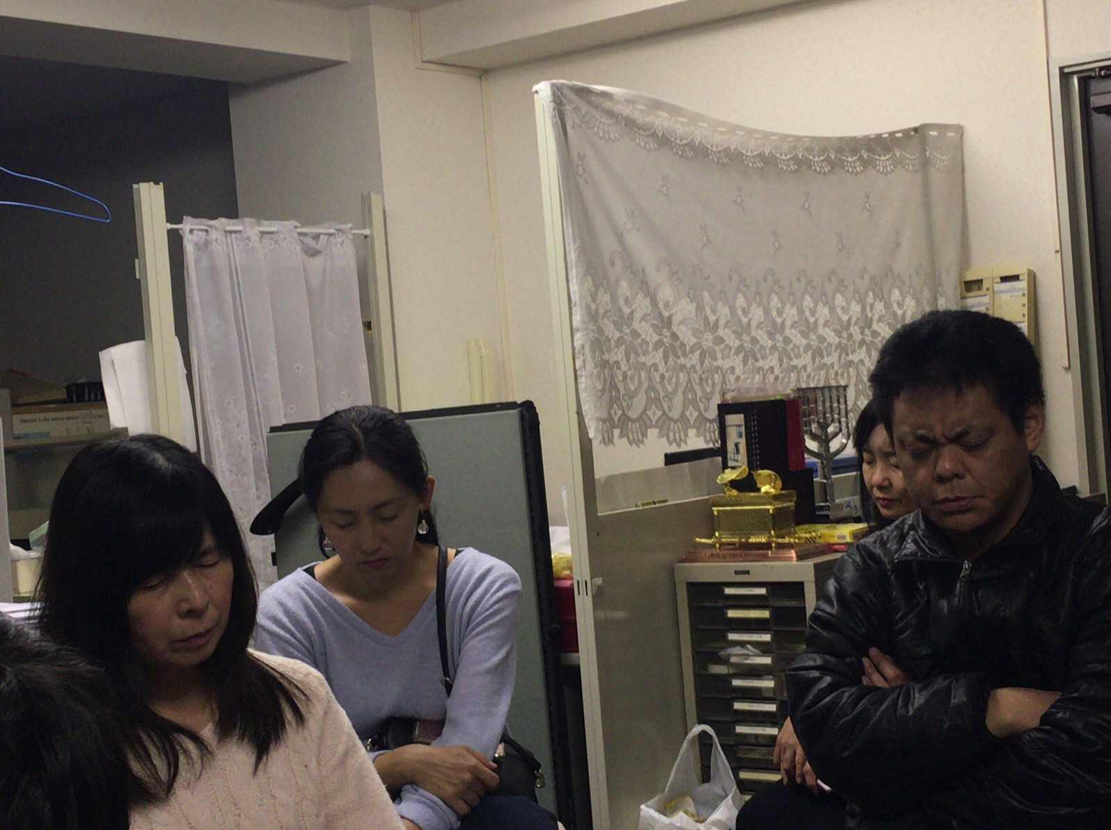 萱野さんが導かれて徹夜祈祷会が行われています。 今、感謝の祈りをしています! meg