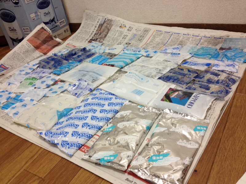 今日大活躍だった保冷剤たちです! お疲れさま! 只今乾燥中。