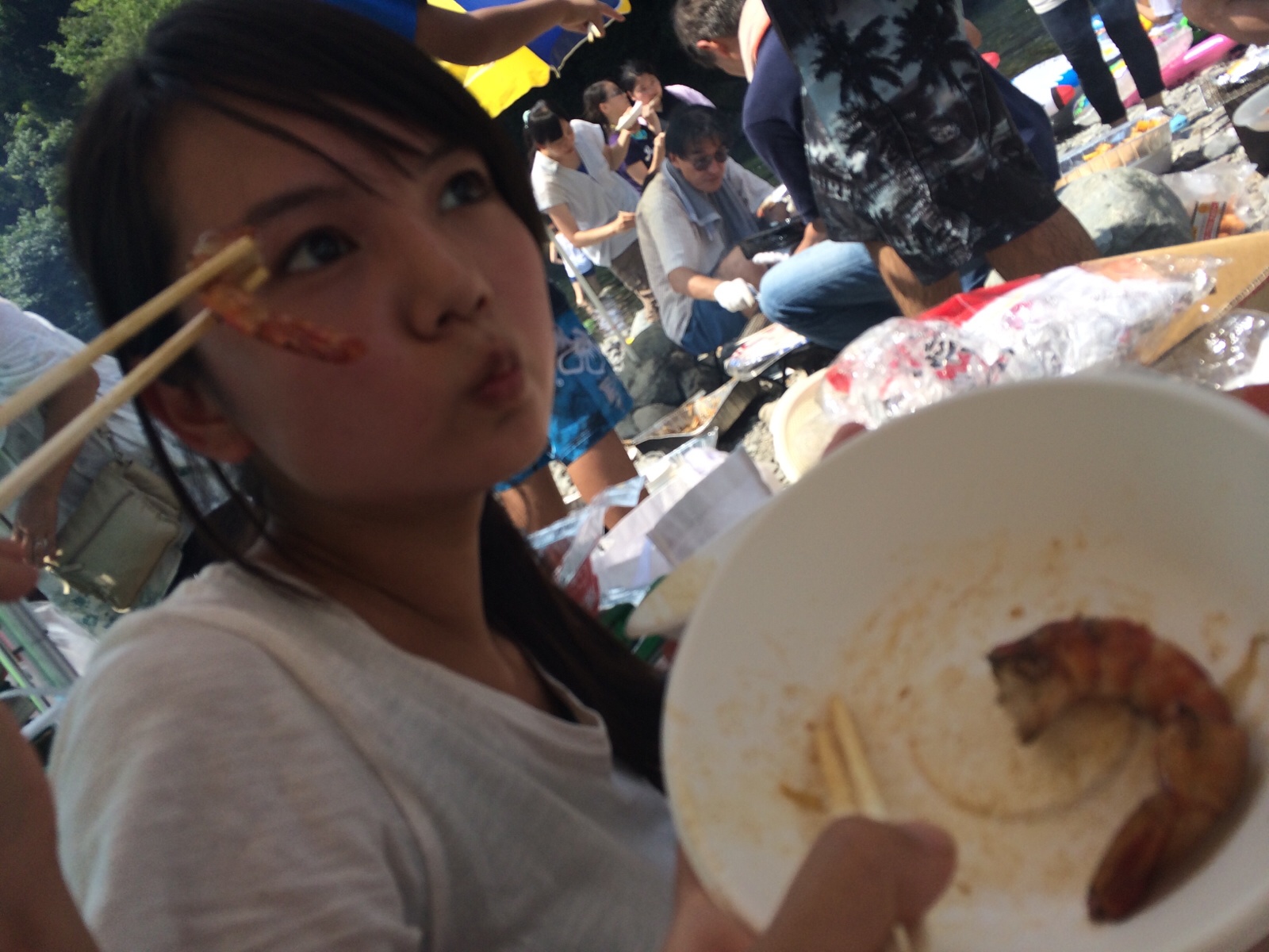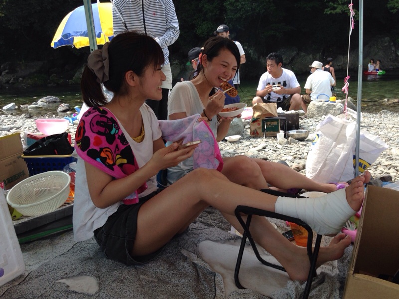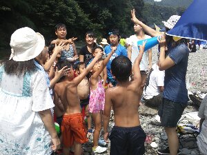 さんびちゃん☆ 川遊びしながら。食べながら。