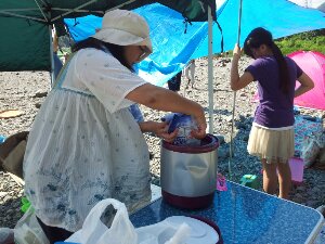 ジョイさんは、みんなのために冷たい麦茶を作っています。