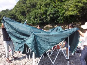 テント作りが始まりました。 沖縄エルサレム教会の牧師の永藤さんから頂いたものだそうです。