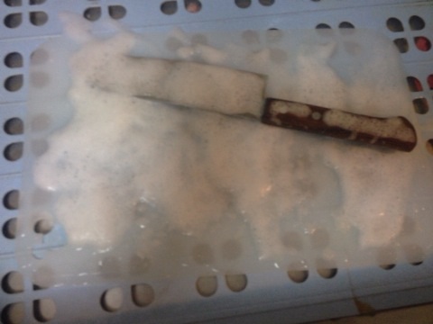 明日持っていくので、包丁とまな板を消毒中〜 だんだん眠くなってきたなぁ(。-_-。)♪
