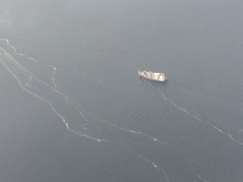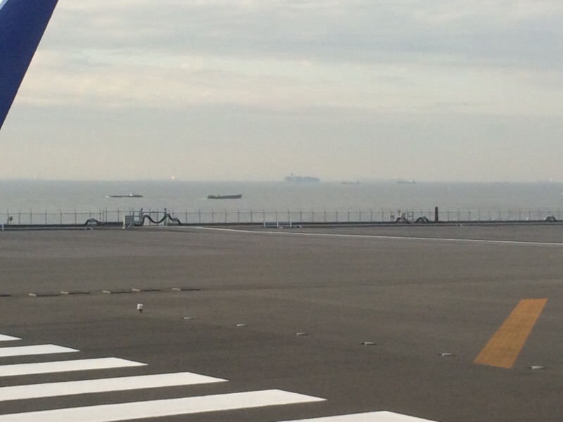 滑走路を飛行機がゆっくり動いてます。 そこで、見えているのはアクアラインのうみぼたる?