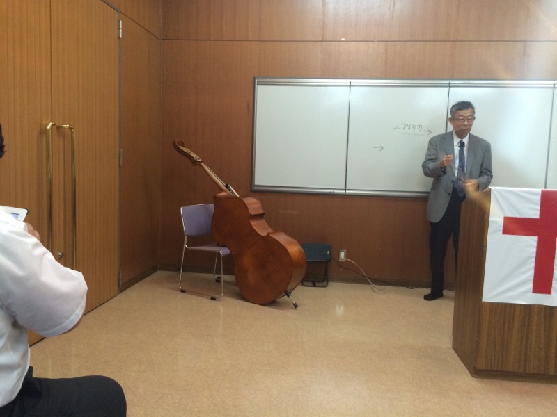 仲本くんがコントラバスのリハーサルをしています。 peter