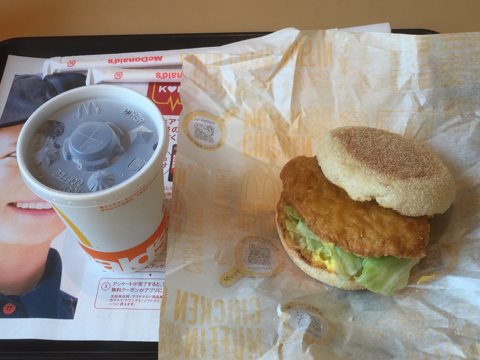 下は、マックで、大好きな、イングリッシュマフィンのチキンクリスプで、モーニングしています。(*^_^*)