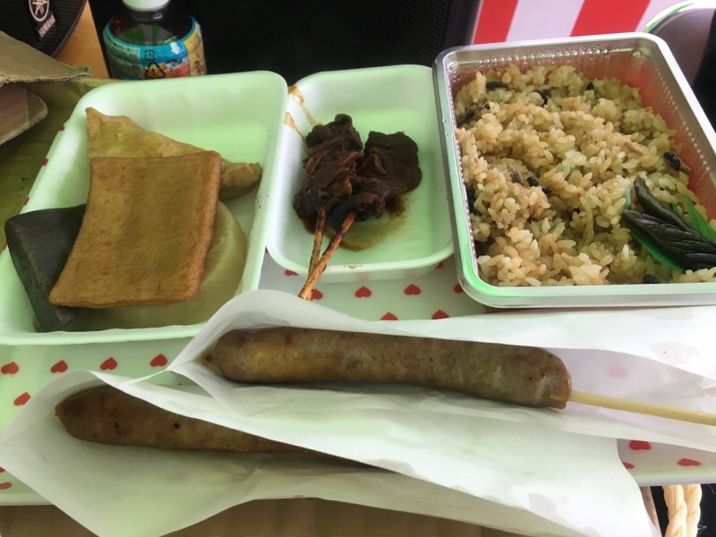 四季桜まつりの会場で、ゴスペルコンサートを行います。 今はかなりの雨なので、テントで屋台のランチ。 名古屋 Kishima