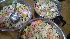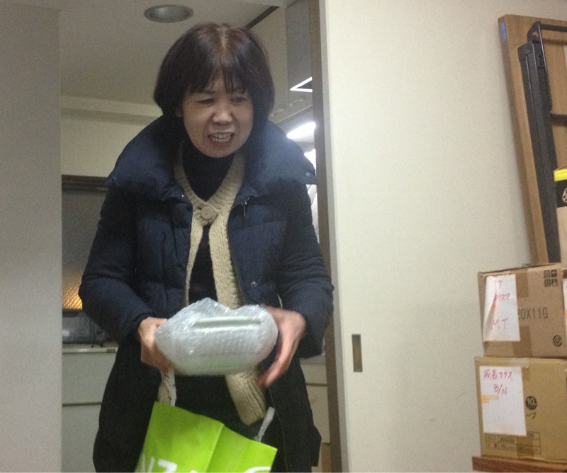 使って下さい!と食器を持って来て下さった荻原さん! 婦人会のお鍋の時にも使えそうです!