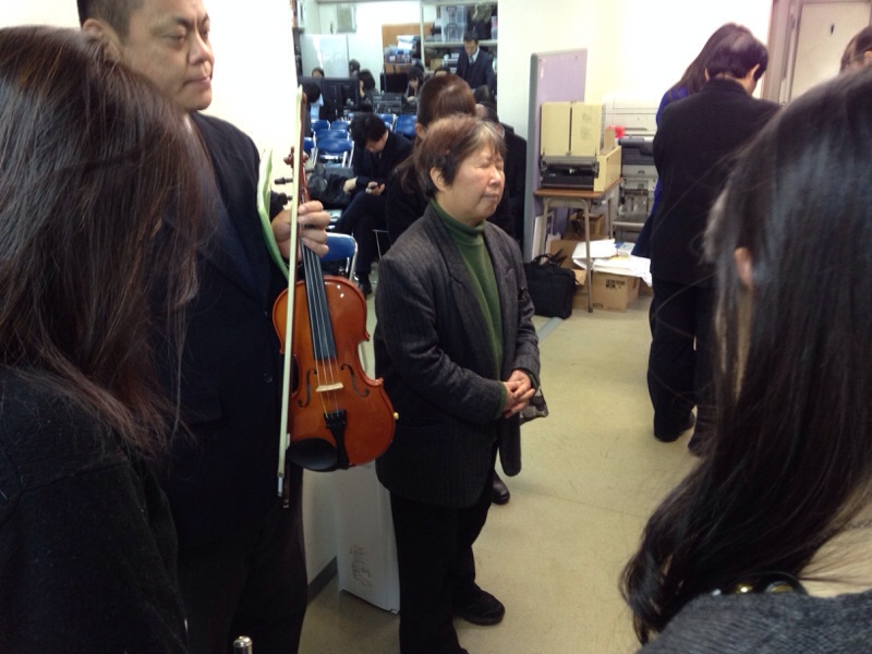 辻郷さん、オーケストラのためのお祈りを導いています。