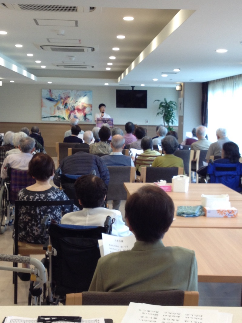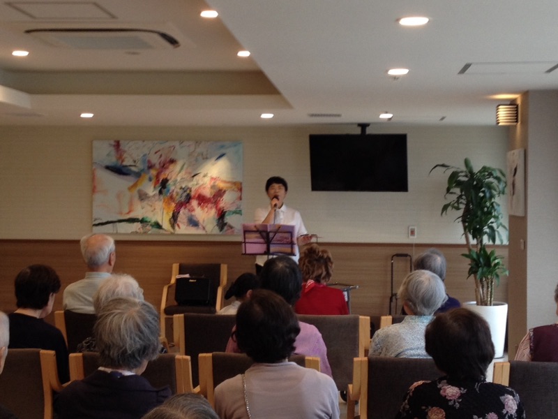 私が行った時にはすでに多くの方がお待ちだったのですが、歌い始めたら、更に入居者さんたちが集まって来られました。