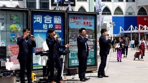 こちら、スーツで、ゴスペル。 向こうにはスーツでオカリナ。