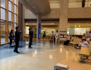 次は鳴門病院でコンサートです。 こちらのロビーでコンサートです。