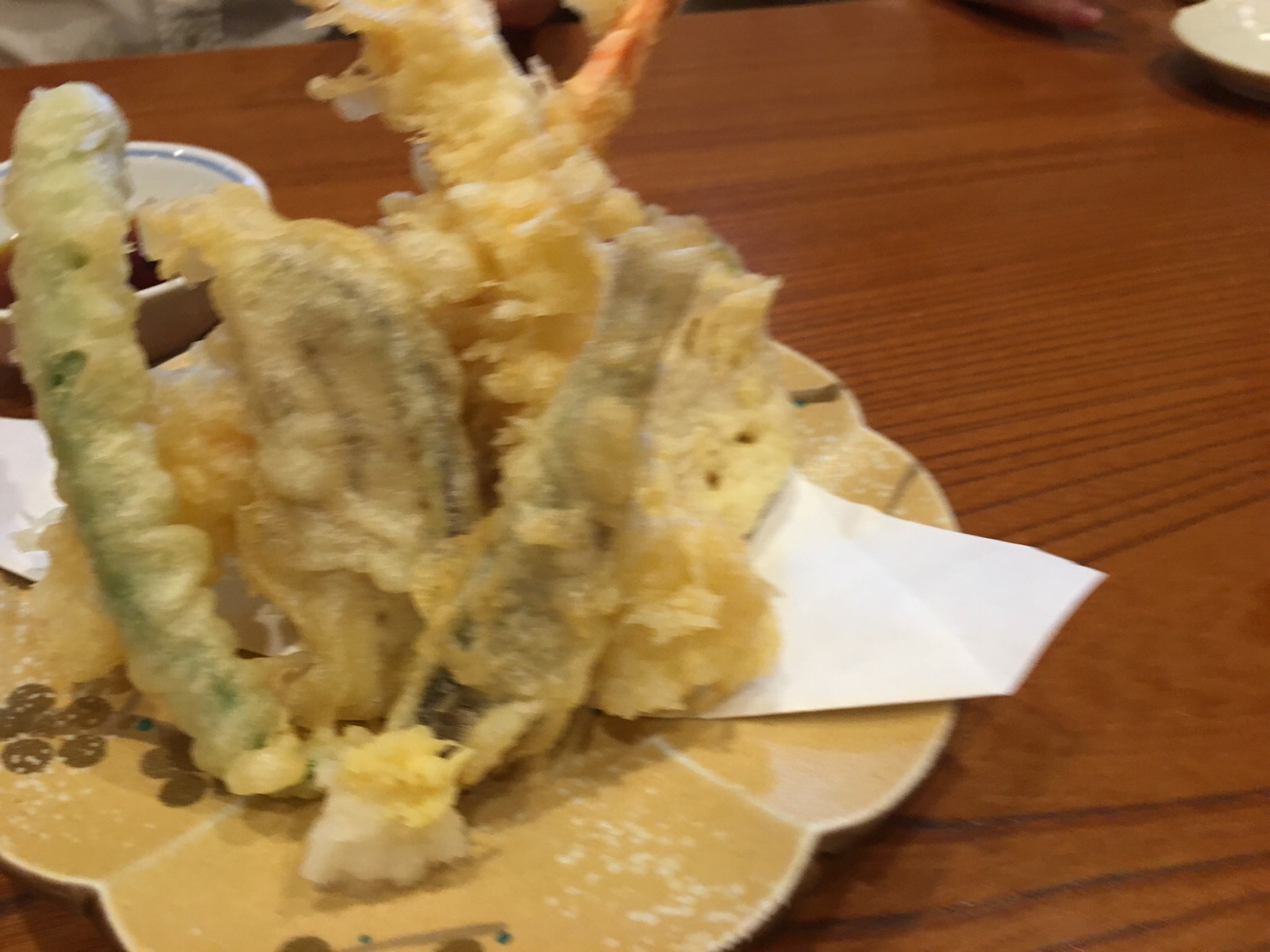 天ぷらも美味しかったです! さつまいもの天ぷらが、めちゃくちゃ美味しい! 鳴門金時というのでしょうか。甘いさつまいもでした。