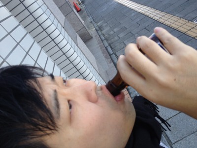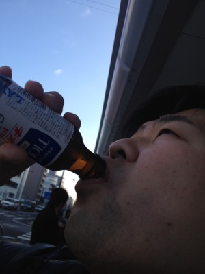 サムエルさん、いつもの栄養ドリンクタイム。