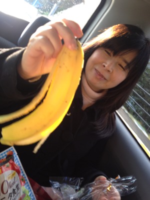 朝食を逃してしまい、お腹空いたカヤノさんでしたが、道中コンビニによりバナナをゲット!