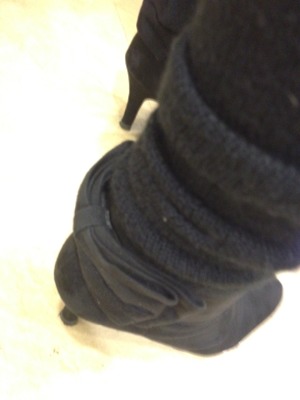 アームウォーマーをレッグウォーマーに代用して防寒対策。