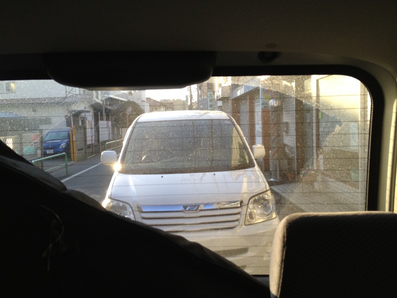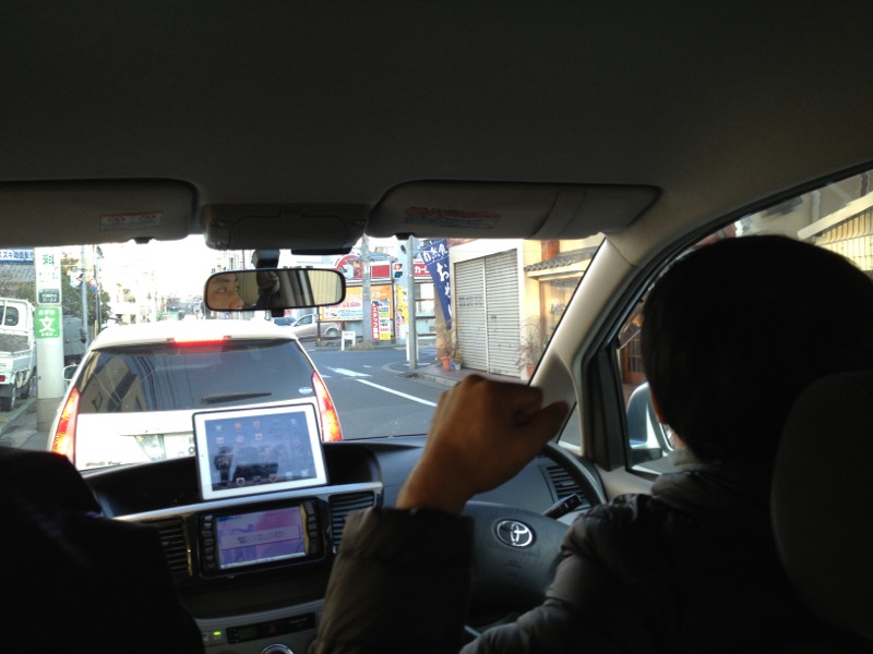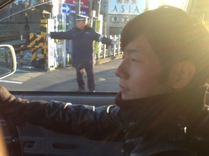レンタカーを返しに行く途中。 まだ眠そうなヒサ
