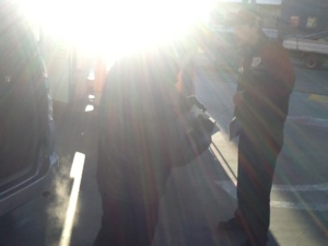 レンタカー屋、到着! 返却中!