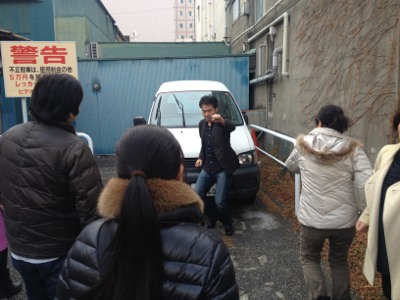 桜座に到着しました。スプレンダーの方々が練習されてます。