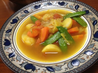 今日はラグースープ。カレー風味。