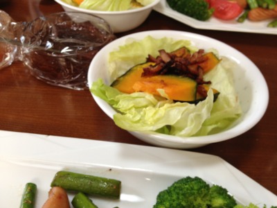 カボチャのサラダと、ダビデ君の目の前にあるドレッシングの相性が抜群です!