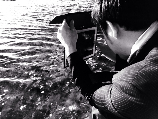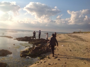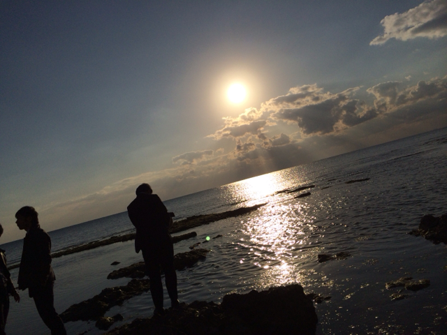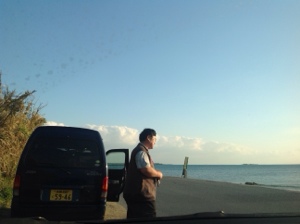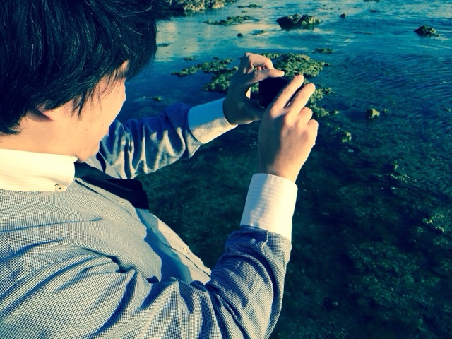 写真を撮るヒサさん。 アオサを食べるヒサさん。 眩しいサムエルさん。