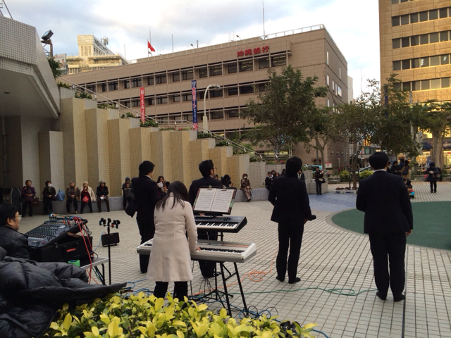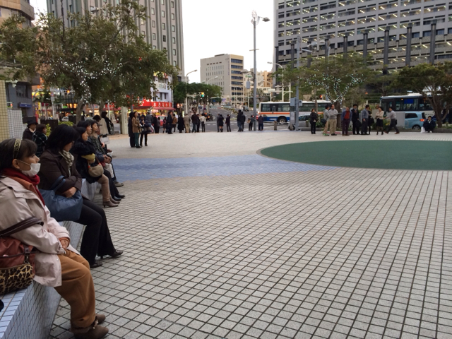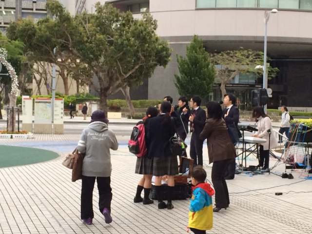 だんだん集まって来ています! 皆さん、座って聴いておられます。