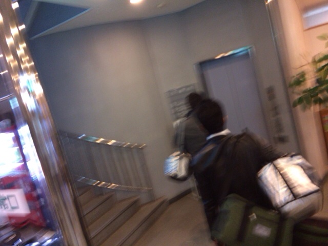エレベーターで機材を運びます!