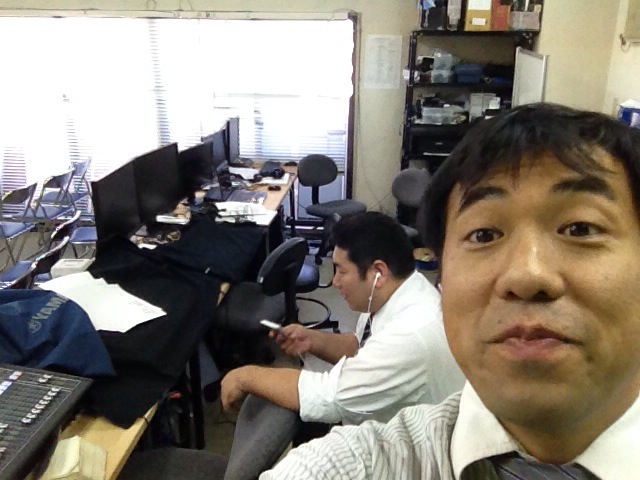 礼拝の為、会堂へ! 真境名さん、PA席に座っています。 何か物色中?