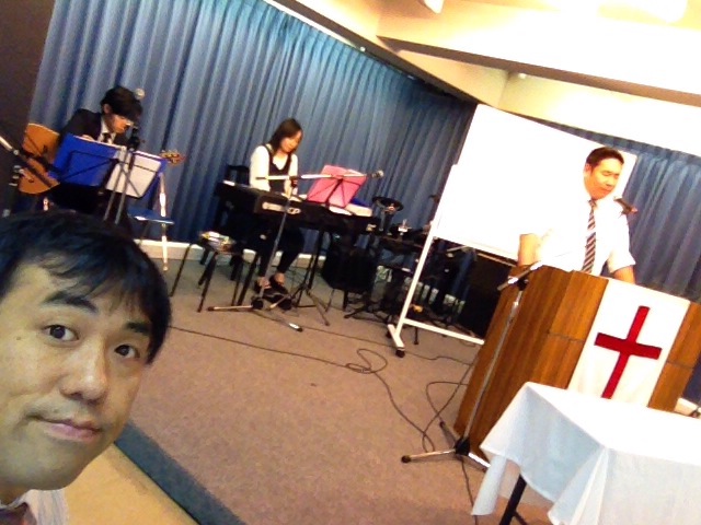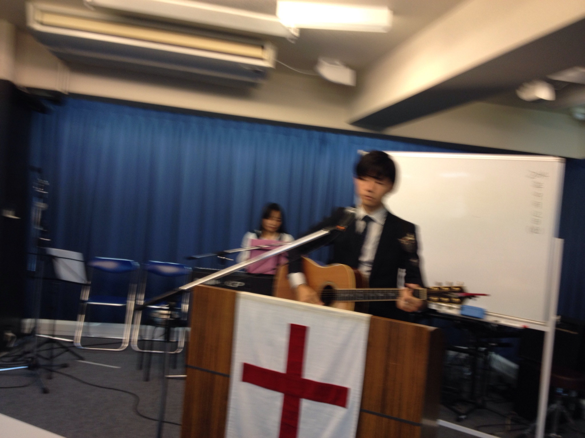 礼拝スタート! ダビデくんも実家から帰ってきて、賛美の奉仕中!