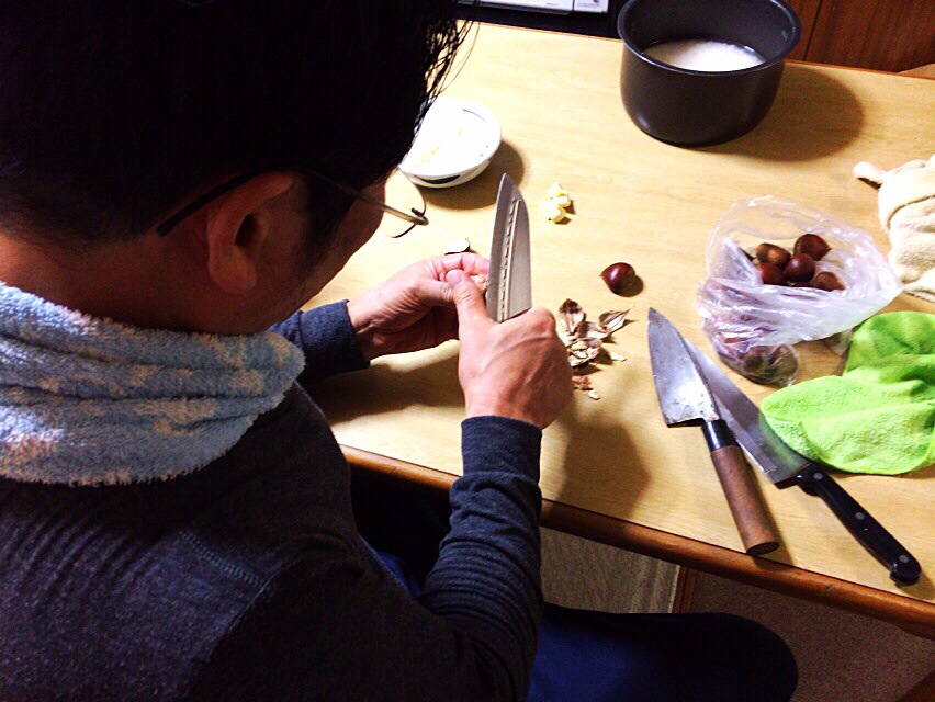 研いだ包丁で栗剥き。 夜は栗ご飯。 David