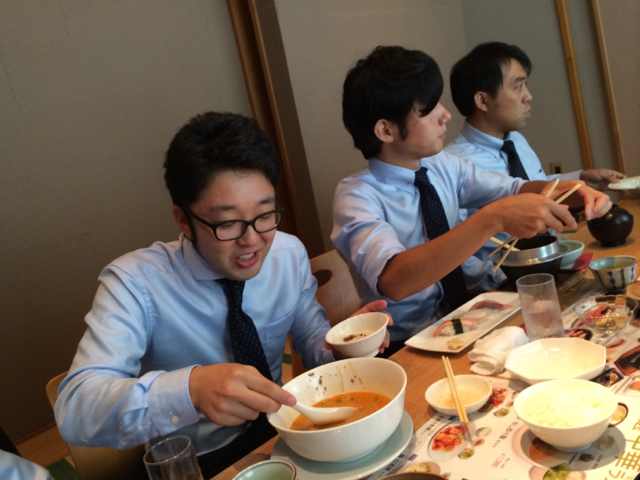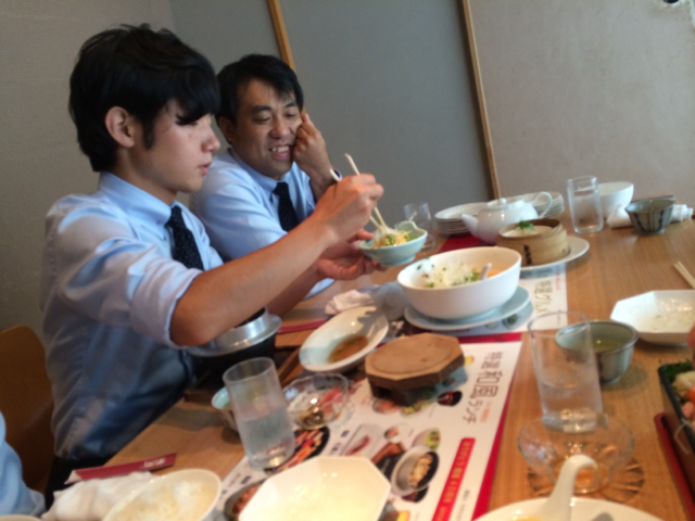 ダビデ君、赤津さんから坦々麺を貰ってます!