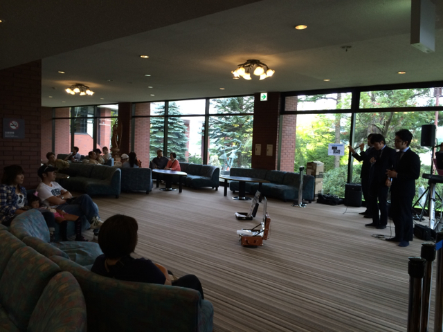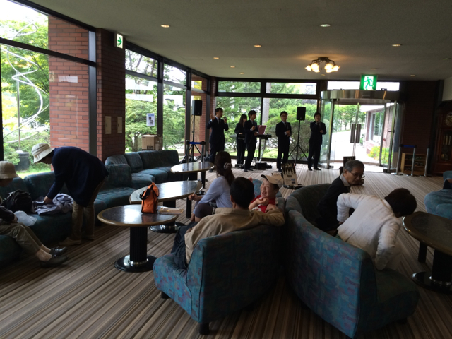 だんだん集まって、前でじっくり聴いておられます。 輝く光の中を が受けてます。