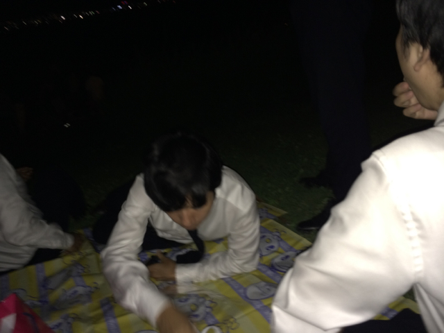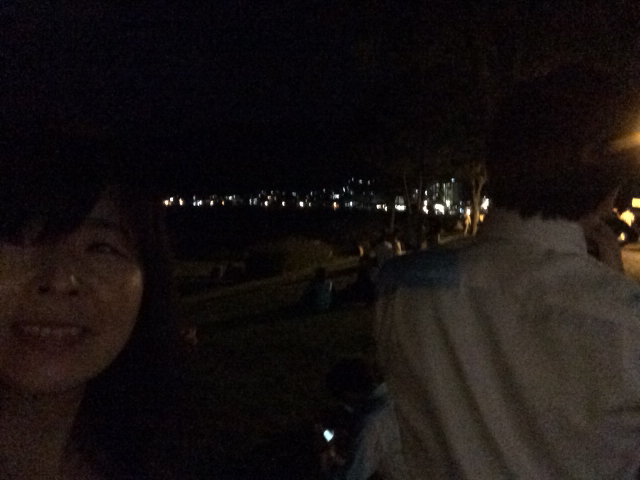 暗いですが、ここで花火を見るそうです!