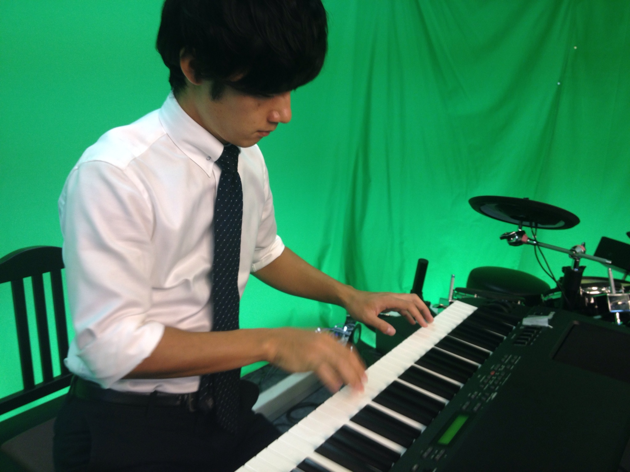 ピアノで様々な音を出して遊んでいるダビデくん。楽しそうです。