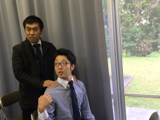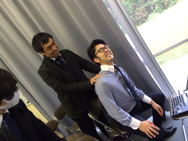 ヒサさんから肩揉んでもらってるヨハネ君!