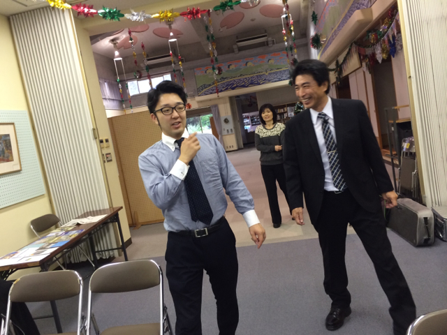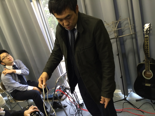 昨日はクワッドコプター飛ばしてましたね! と、ヨハネ君に真栄城さんが話されてます。