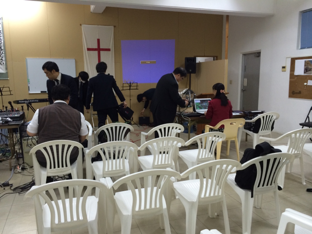 次の聖会会場へ移動しています。 7時から始まります。