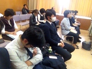 半袖の人もいます! ちなみに横の大きな方は? 真境名さんです。