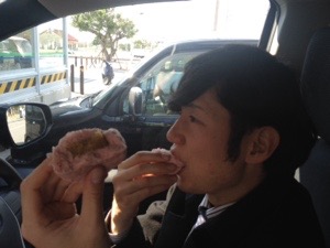 ダビデくん、沖縄限定?の焼き芋まんを食べています。おいしそうだなぁ。