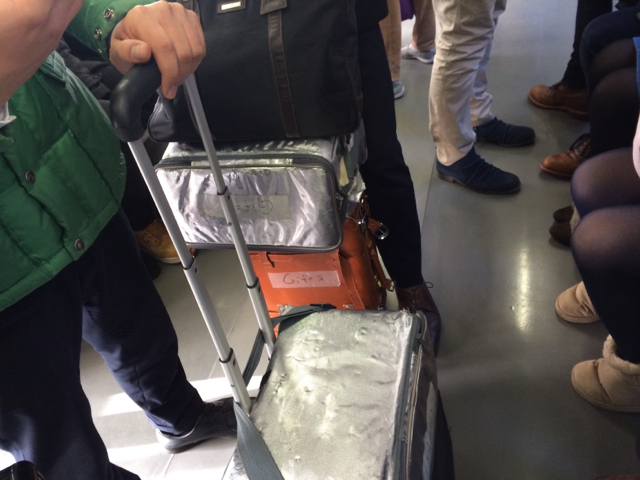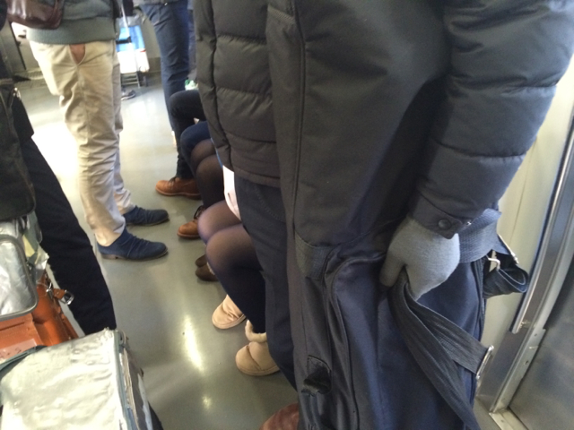 今日は車がないので、路上ライブの為の機材や楽器を持っての移動です。