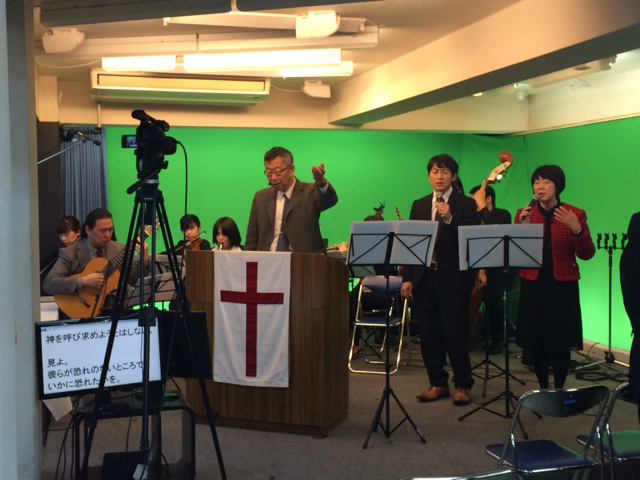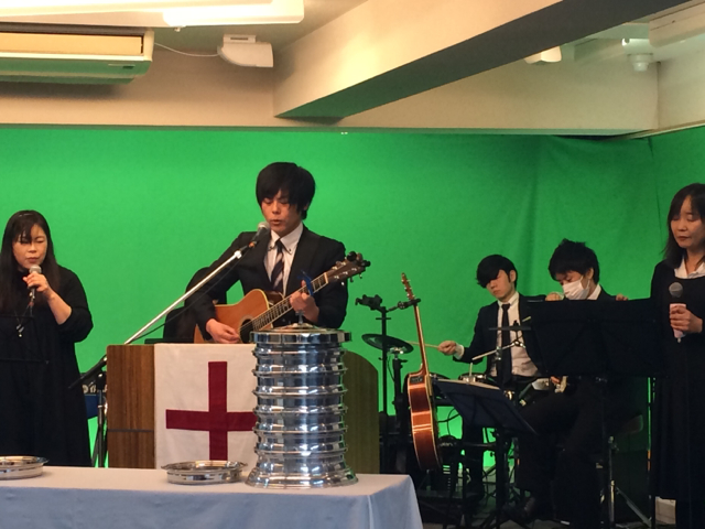 東京アンテオケ教会の牧師である秋元さんが導かれる賛美の時です。