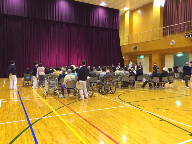 病院での体育館でのコンサートがスタートしました! 沢山の方々が集まって下さいました。