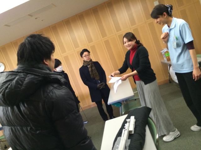 病院に到着して、今、控え室にいます。 病院の担当の方々と打ち合わせです。