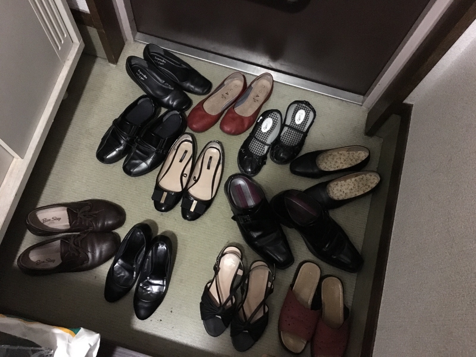 教会事務所を出ます! 靴がいっぱいだ〜 今、教会事務所ではインターネットの祈り会だから。 Kayano