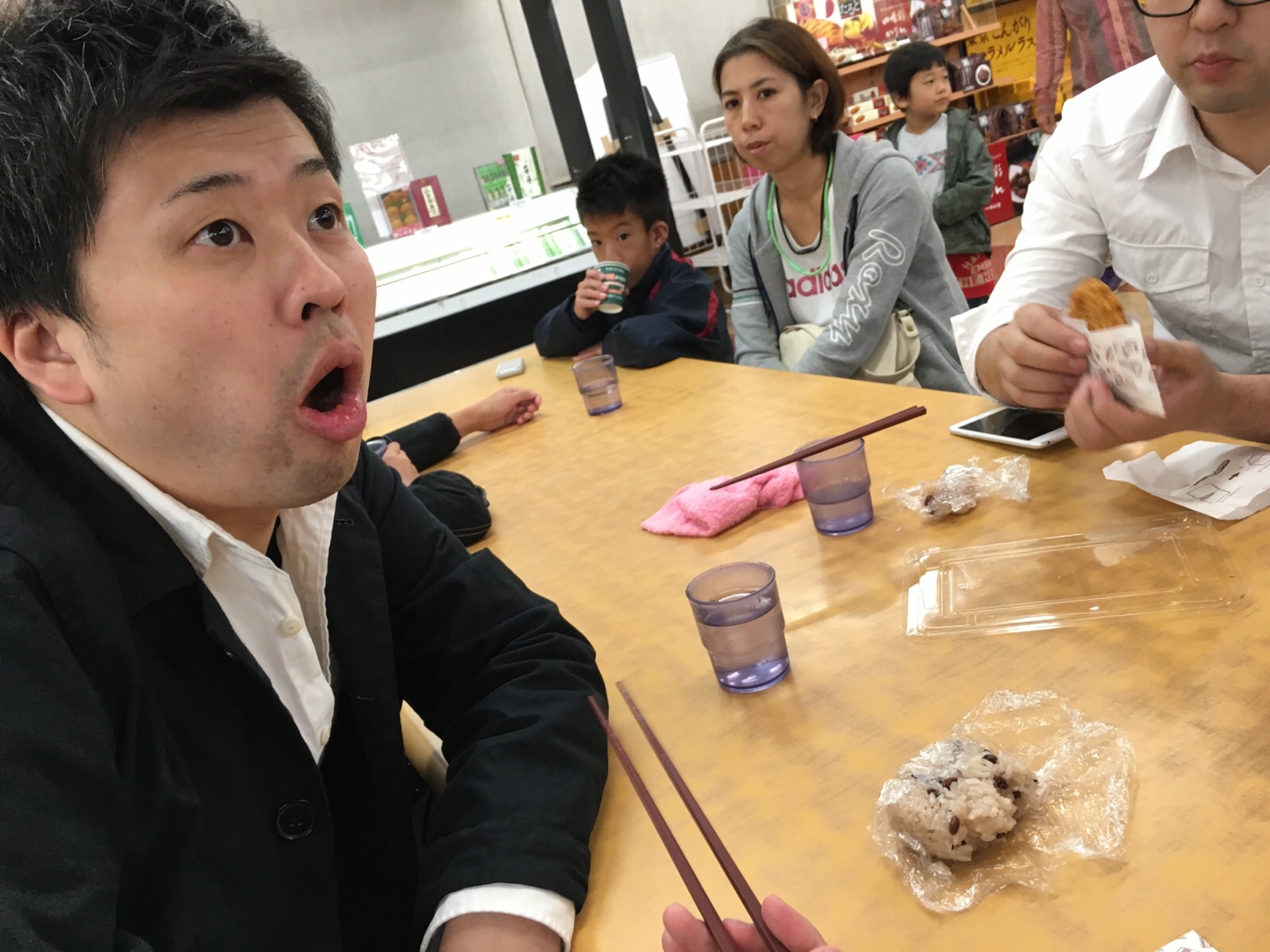 戴いた赤飯と、松茸ご飯を、ここで食べことに!