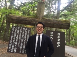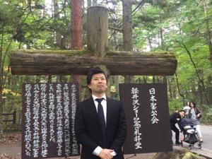結婚式場前でのサムエルさんとヨハネくん。