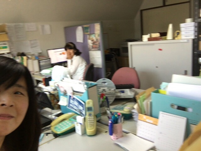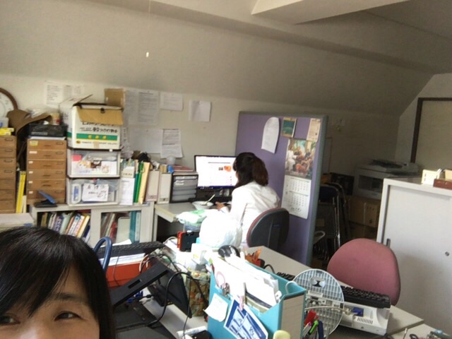 教会事務所に来ています。 向こうにいるのは加藤さん! Kayano