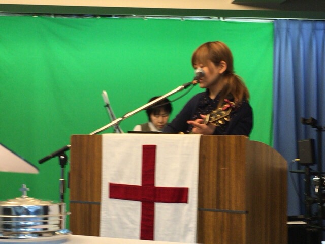 火曜礼拝が行われれています。 賛美の時。 Kayano