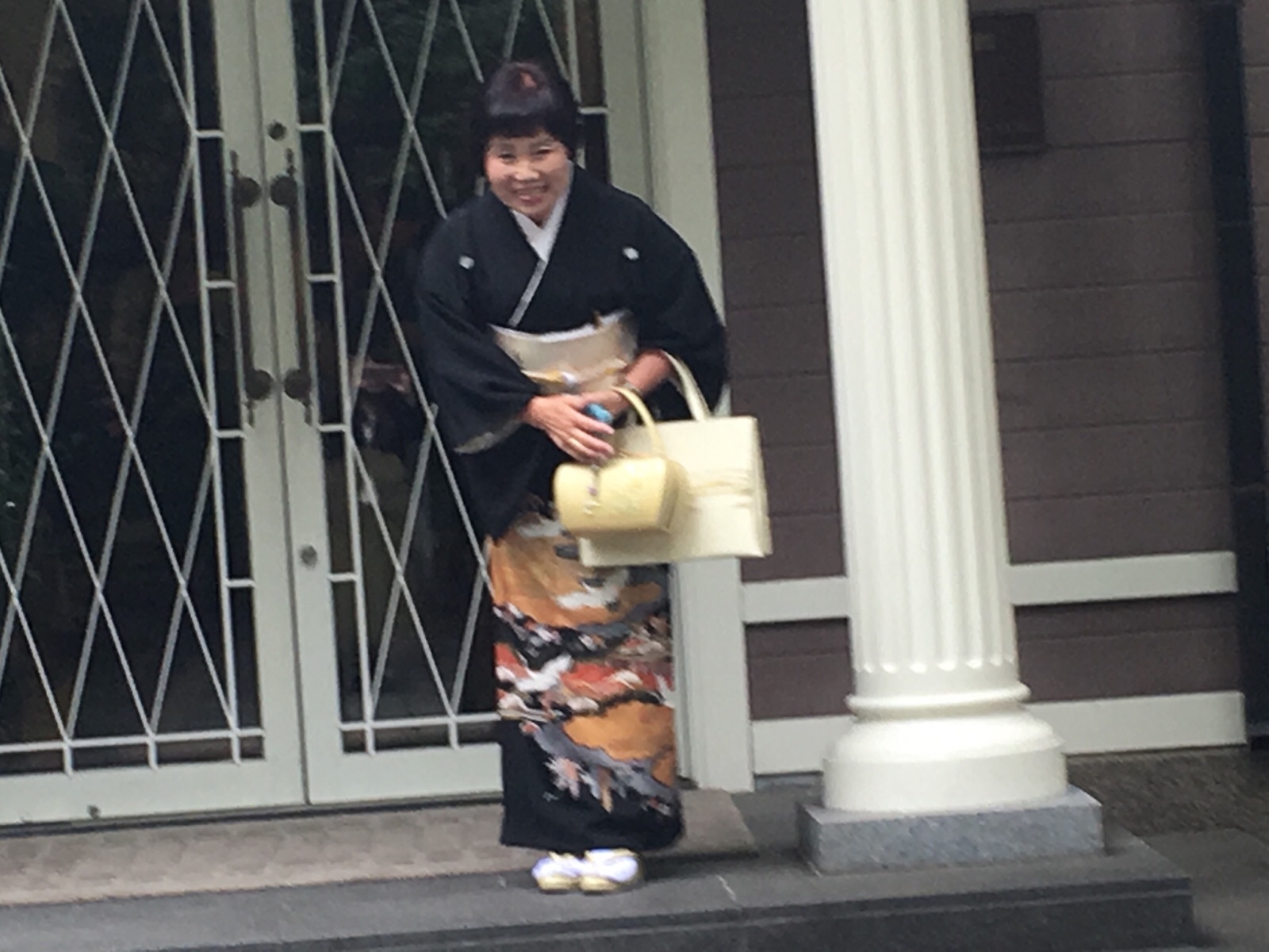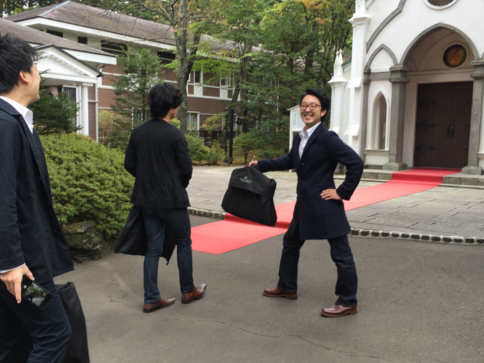 外に出て、ポーズを取るヨハネ君!
